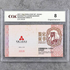 2015年1/4盎司九华山金币证书