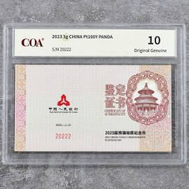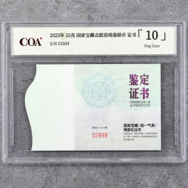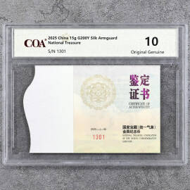 2025年15克方形国家宝藏锦护臂彩金币证书