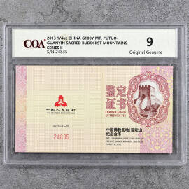 2013年1/4盎司普陀山金币证书