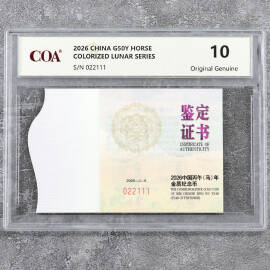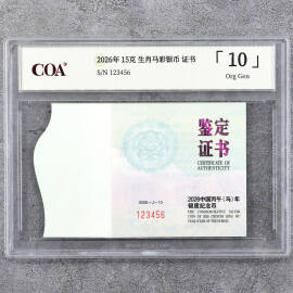 2026年15克生肖马铂币证书