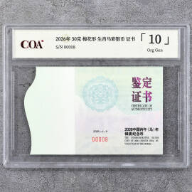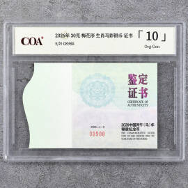 2026年30克梅花形生肖马彩银币证书
