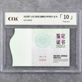 2024年15克国家宝藏象牙杯银币证书