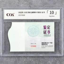 2025年15克国家宝藏铜车马银币证书