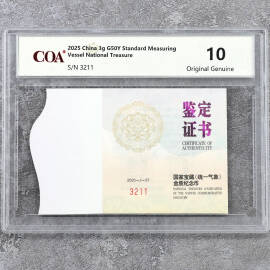 2025年3克国家宝藏商鞅方升金币证书