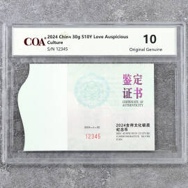2024年30克吉祥文化心心相印银币证书
