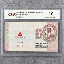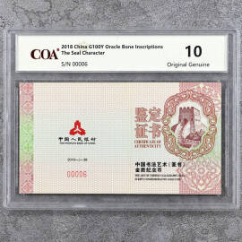 2018年8克书法艺术第1组金币证书