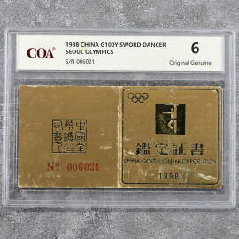 1988年1/2盎司第24届奥运会女子剑术金币证书